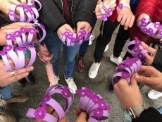- Realización de pulseras con el símbolo de la Diosa Venus, las cuales repartieron los participantes del curso a las mujeres de la localidad que se encontraban en la Plaza de España.