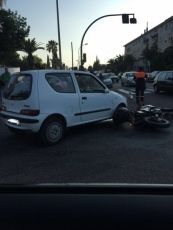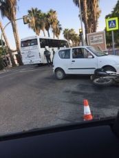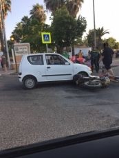 Este accidente se ha producido entre un turismo y una motocicleta. El motorista estaba sentando en el suelo donde estaba siendo atendido inicialmente por miembros de Cruz Roja. En el cruce se encontraban efectivos de la Policia Local y Guardia Civil para controlar la afluencia del público y del trafico que ya de estaba concentrando para este festival.