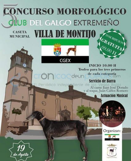 En el concurso que está organizado por la Asociación de Galgueros de Montijo y el Club del Galgo Extremeño, podrán participar galgos de todo el territorio nacional divididos en las categorías de Muy Cachorros, Cachorros, Jóvenes y Abierta.