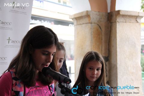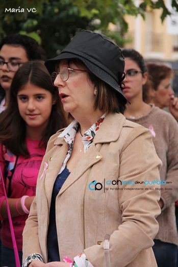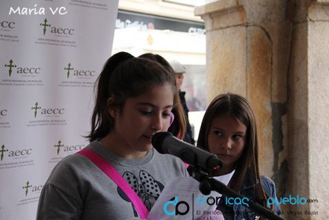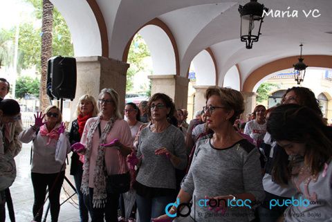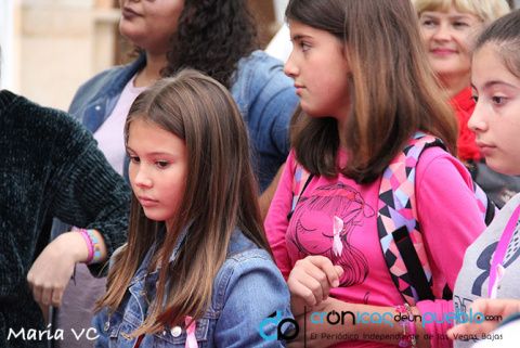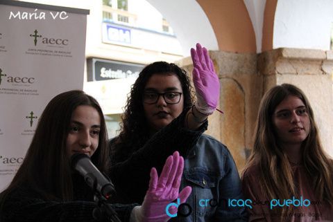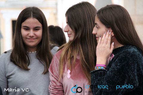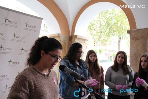 La AECC y alumnas de algunos centros educativos montijanos leyeron un manifiesto de apoyo a los afectados por cáncer de mama al que se sumaron vecinos de Montijo.