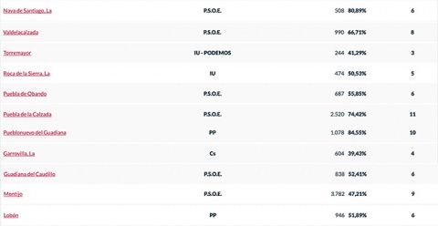 En Pueblonuevo del Guadiana los datos han sido claros: el PP obtiene 10 concejales de 11 posibles. El PSOE, que en las últimas elecciones habían ganado en número de votos y conseguido 5 concejales, sin poder gobernar al realizarse un pacto entre PP y Extremeños, se queda en estos comicios con 1 sólo representante.