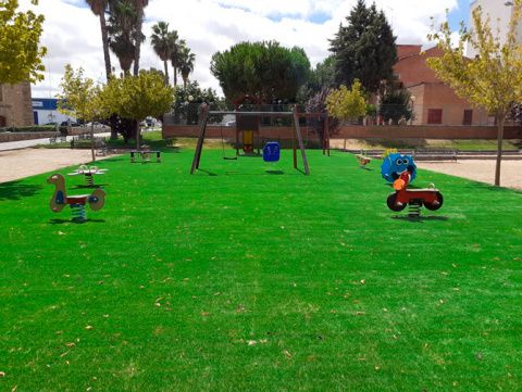 Se ha realizado el cambio de suelo de seguridad de arena por el de césped artificial sobre base amortiguadora, adecuando la zona para su uso y disfrute de los vecinos de la zona.