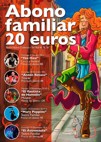 El Teatro Nuevo Calderón de Montijo ha creado un abono para todos los espectáculos de teatro infantil o familiar durante la temporada de otoño 2019.