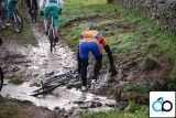 A varios km de la salida el primer paso por un río , esta vez la organización había construido un pequeño puente no como el año que nos mojamos hasta la etiqueta de la equipación. El barro en las ruedas, en cambio y cadena nos acompaño hasta el primer avituallamiento barritas energéticas y bebidas isotónicas para coger fuerza.