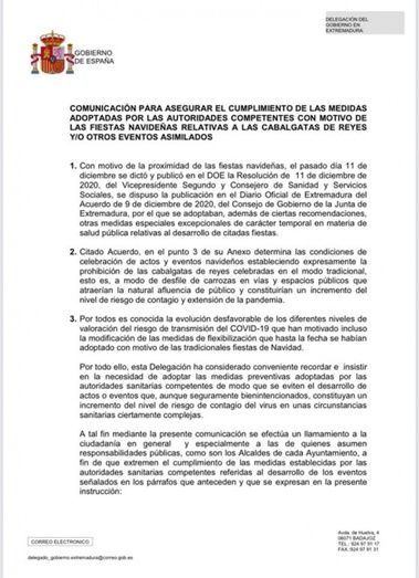 Esta misma mañana comunicaban los Ayuntamientos de Montijo y Puebla de la Calzada algunas de estas medidas, que se traducían en la no celebración de la Cabalgata tal y como se había pensado hacer (celebración que también había variado este año al no poder realizar un desfile tradicional) y durante el mediodía y horas posteriores hemos ido conociendo las notas publicadas por otros de los Consistorios de la comarca:
