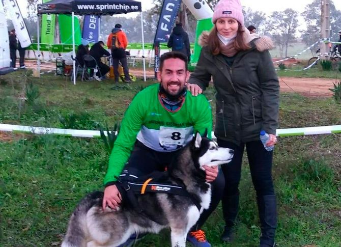 El montijano Cristian Ramírez participó en esta singular prueba resultando tercero en su categoría de canicross, disciplina deportiva que se está consolidando en los últimos años en España y con larga tradición en otros países europeos, consistente en correr con un perro atado a la cintura con un cinturón y una línea de tiro que va hasta el arnés del perro.