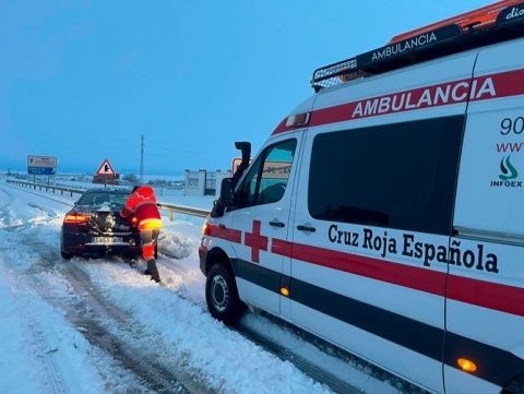 Cruz Roja en Extremadura ha realizado llamadas de seguimiento e información con consejos de prevención frente al frío a personas mayores a través de sus Centros de Contacto y ha colaborado en el rescate de vehículos que se han visto afectados por las nevadas.