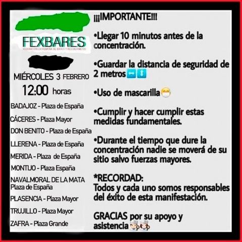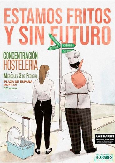 La concentración de apoyo a la hostelería convocada por Fexbares y Avebares (Asociación de las Vegas Bajas del Guadiana de bares y restaurantes), tendrá lugar en la Plaza de España de Montijo.