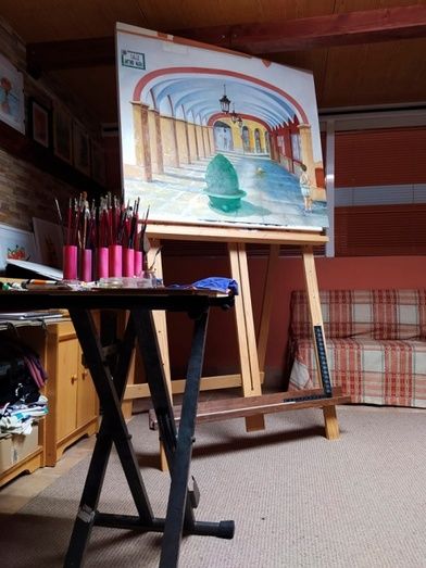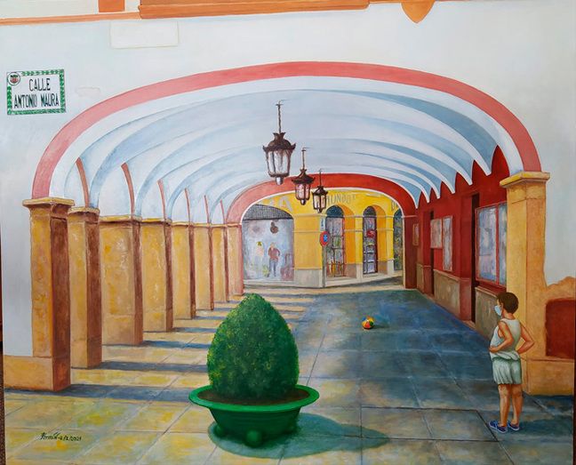 A través de la pintura podemos expresar nuestras inquietudes, nuestros pensamientos y nuestra forma de ver el mundo. Y así lo ha hecho Fermín García en su último cuadro, un óleo que muestra los soportales del Ayuntamiento de Montijo en una curiosa perspectiva y quiere expresar la soledad de sus calles, de sus gentes, en estos últimos meses.