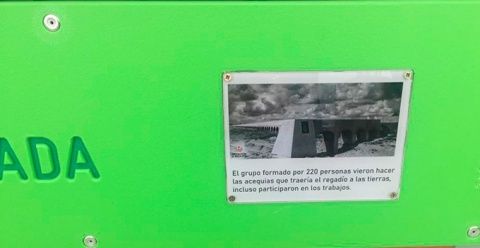 “Un paseo con historia”, se llama. Una idea sencilla, pero efectiva. Se trata de una serie de fotografías y planos que se han puesto en los bancos del paseo del antiguo canal, una amplia avenida donde los vecinos del municipio pueden pasear, pararse a ver esas fotografías y leer su significado y sentarse a descansar, conociendo poco a poco y paso a paso los inicios de su localidad.