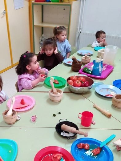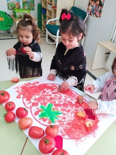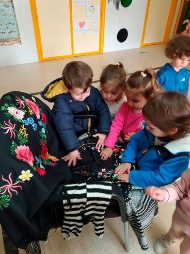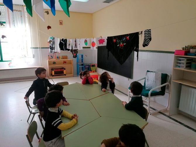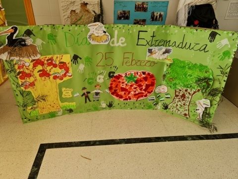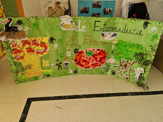 Durante toda la semana, los niños se recibían con música extremeña cada mañana para introducirlos en el conocimiento de nuestro folklore. En el recibidor de la entrada al centro, han podido ver algunos trajes típicos, murales con peces de nuestros ríos y frutos y plantas de nuestros bosques, que les han permitido apreciar la variedad y belleza de nuestra tierra. En las clases, han participado en un cuentacuentos, han preparado gazpacho, olido flores, dibujado cigüeñas negras y mantones de manila, cerezas, tomates… todo ello para que desde pequeños aprendan a amar nuestra cultura.