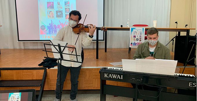 Tuvieron el privilegio de charlar por videoconferencia con Álvaro Urquijo, uno de los fundadores del grupo de pop Los Secretos. Les acompañaron durante todo el acto Celia Romero, cantaora flamenca, y Nerses Avakimyan, Concertino de la Orquesta de Extremadura, quien, además de intervenir en la mesa redonda, ha tocado para el auditorio varias composiciones musicales, acompañado al piano por el alumno del Centro, Josué Gragera.