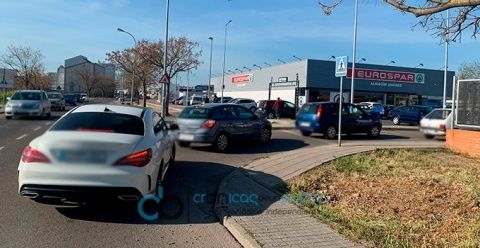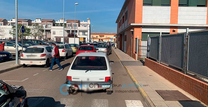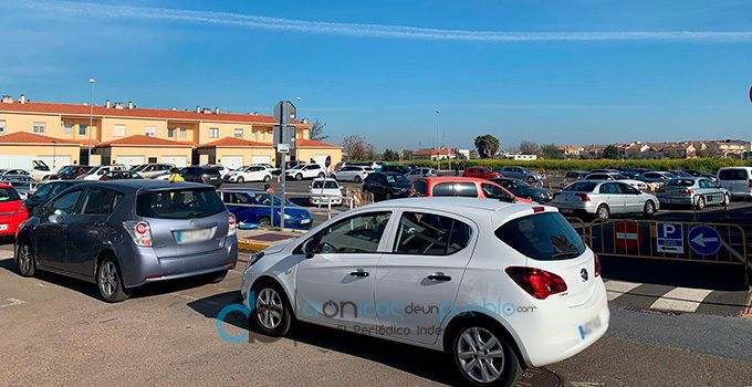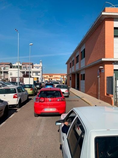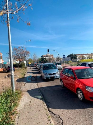 Colas de coches en la zona del Centro de Salud de Montijo-Puebla de la Calzada