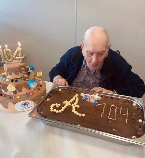 Feliz y sonriente, sopló las velas de su tarta compartiendo una tarde especial con los usuarios y trabajadores de la residencia, y su familia, cumpliendo con los protocolos de seguridad debido al Covid.