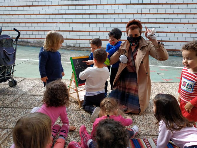 Durante la semana del 19 al 23, y entre las actividades más relevantes se ofreció a los niños y niñas de los grupos de 2-3 años un cuentacuentos, Los Tres Cerditos, narrado e interpretado por la mamá de un alumno que logró sumergirlos con alegría en todos los personajes captando toda su atención, participación y entusiasmo.