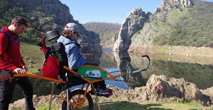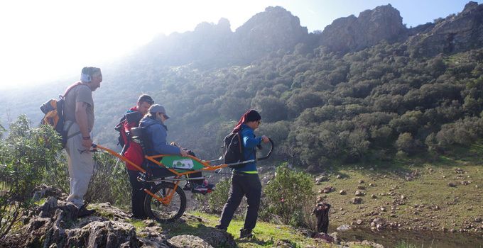 Su suerte cambió hace algunos años. En 2016 conoció al Grupo Senderista La Dehesa, de Mérida, a través de una compañera de carrera. Los miembros del grupo senderista habían realizado un curso para llevar la silla joëlette, una silla especial pensada para la inclusión y cuyo objetivo era eliminar barreras y facilitar el senderismo a las personas con discapacidad física). La joëlette parecía estar esperando a Yoli y era un momento que no iba a desaprovechar. Desde entonces, de la mano de este La Dehesa, no hay montaña que limite a Yolanda, que es feliz conociendo Extremadura, sus zonas naturales y también sus ciudades, “algunas poco accesibles para personas con discapacidad física”, señala. Y todas estas vivencias las comparte en su blog: “Yolanda en joëlette”.
