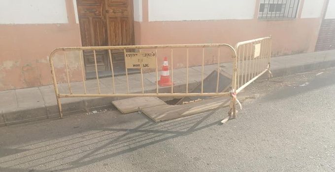 Un vecino de Montijo denuncia el estado de un socavón en la calle Macías de Porras