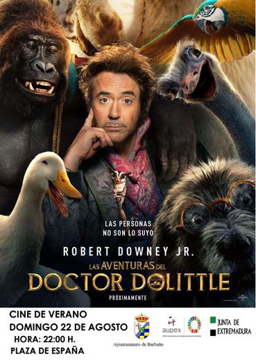 El domingo, 29 de agosto, será el turno del cine de verano, con la proyección de la película "Las aventuras del Doctor Dolittle", a las 22:00 horas, también en la Plaza de España.