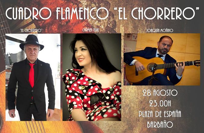El sábado, 28 de agosto, se podrá disfrutar del cuadro flamenco "El Chorrero", que ofrecerá su espectáculo a las 23:00 horas en la Plaza de España de la localidad.