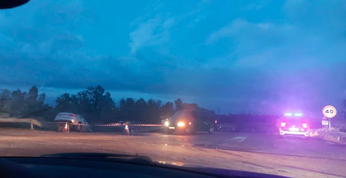 En el cruce de salida de Barbaño a la carretera EX328, la velocidad a la que circulaban los ladrones hizo que tuvieran un accidente en el que un coche volcó y el otro se estampó contra el quitamiedo, quedando prácticamente siniestros, emprendiendo una huida a pie en la que, ayudados por la oscuridad de la noche y la vegetación de la zona, ya no fueron localizados.