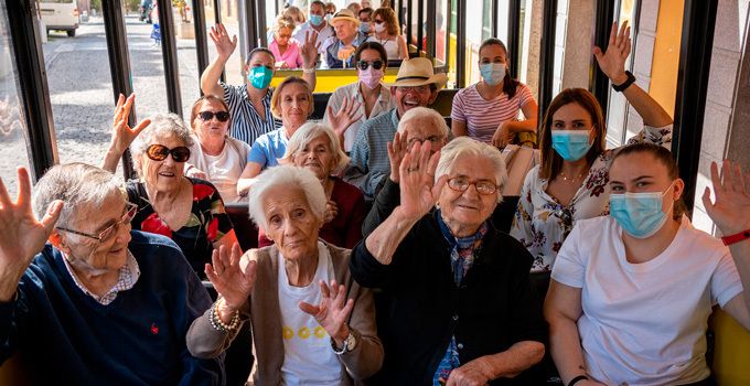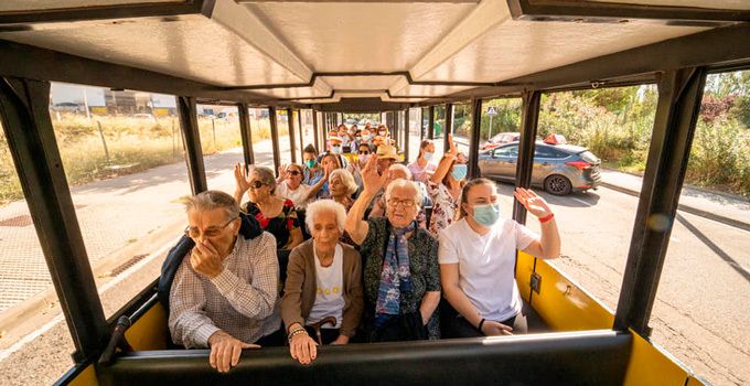 Los usuarios del centro residencial, junto a sus cuidadoras, realizaron una excursión a la capital extremeña, recorriendo sus puntos más emblemáticos en un tren turístico.