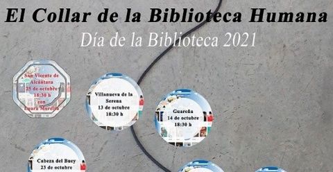 Este collar de la biblioteca humana recorrerá varias localidades pacenses para celebrar el Día de la Biblioteca. Tras la visita a Montijo será el turno de Puebla de la Calzada, el jueves 21 de octubre, y Valdelacalzada el viernes 22 de octubre.