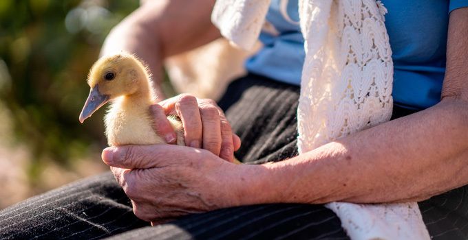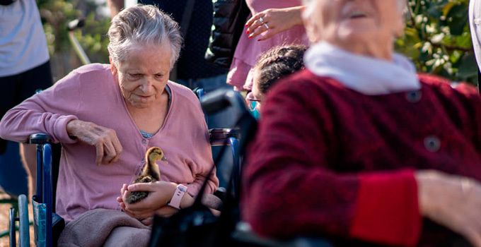 Los mayores de la Residencia Virgen de Barbaño celebraron el Día Internacional de la Mujer Rural con una visita a una granja rural regentada por una mujer, Mari Carmen Fernández, donde los mayores han disfrutado contando sus experiencias de vida en el campo, realizando además terapia con animales.