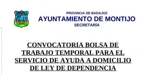 El Ayuntamiento de Montijo convoca una bolsa de trabajo temporal para el servicio de ayuda a domicilio de ley de dependencia en el Ayuntamiento de Montijo.