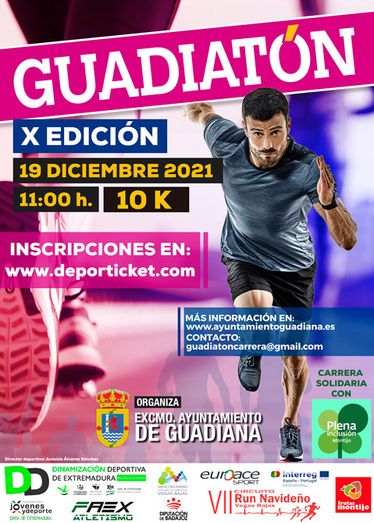 Ya están abiertas las inscripciones para la Guadiatón X Edición, que se celebrará en Guadiana el próximo 19 de diciembre, a las 11:00 h. La prueba, organizada por el Ayuntamiento de la localidad, cuenta con la colaboración de la Fundación Jóvenes y Deporte de la Junta de Extremadura, la Federación Extremeña de Atletismo y el Club de Atletismo de Montijo.