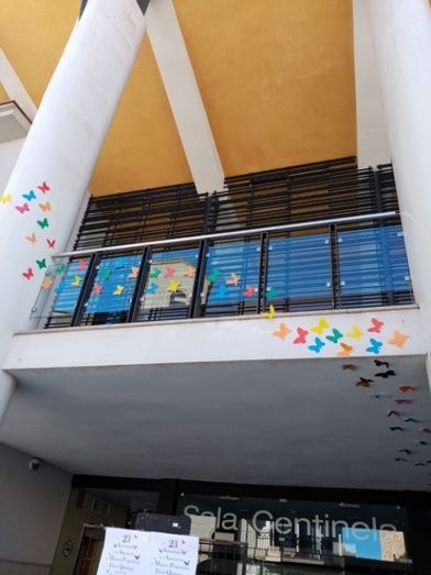 La sala Centinela se ha decorado con una bandada de mariposas que vuelan hasta el exterior de la calle, que recuerda la historia de las hermanas Mirabal, realizadas por las socias de la Asociación de Mujeres. Las personas que estaban viendo la exposición fueron sorprendidas con una espectacular intervención de la Escuela Municipal de Danza de Montijo.