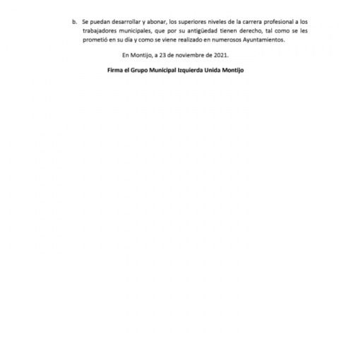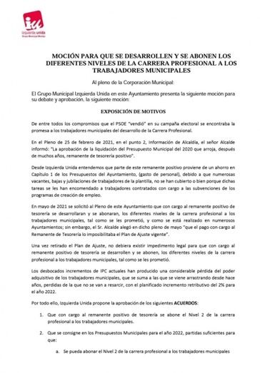 La segunda moción presentada será para que se desarrollen y abonen los diferentes niveles de la carrera profesional de los trabajadores municipales.