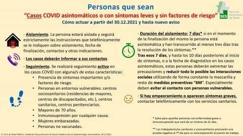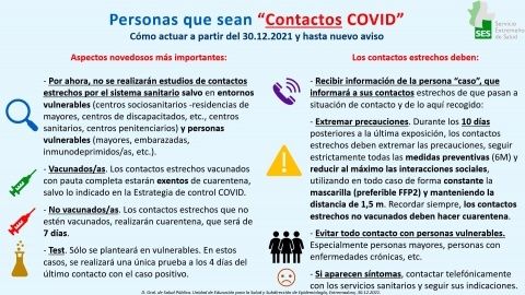 A las puertas del nuevo año y con un virus cambiante, la Dirección General de Salud Pública modifica de nuevo los pasos a seguir a la hora de notificar casos Covid y hacer seguimiento de los positivos.