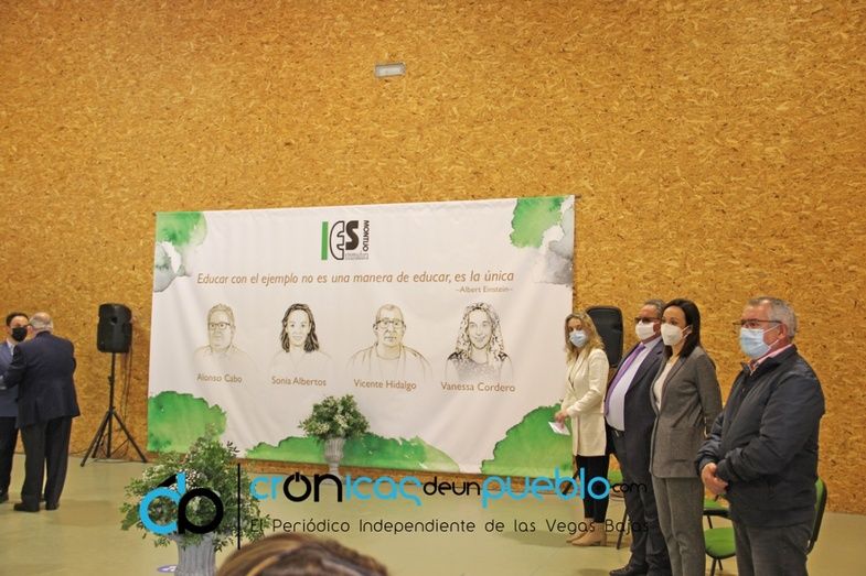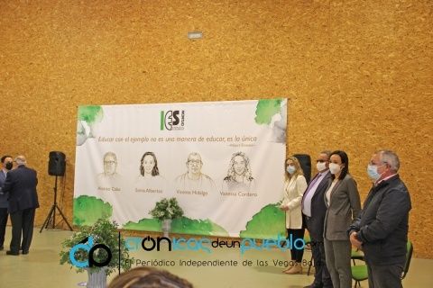 El protagonismo de la tercera parte del acto fue para las madrinas y los padrinos, que tras una introducción de sus respectivas trayectorias, se dirigieron al público asistente: autoridades, comunidad educativa, directores y representantes de los centros educativos de Montijo y las familias de Vicente, Vanessa, Alonso y Sonia. Todos ellos pusieron de manifiesto el agradecimiento al centro por poner sus nombres a los cuatro edificios.
