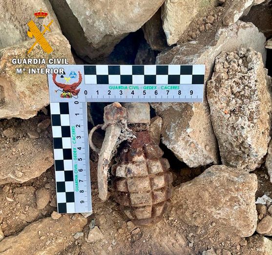 La Guardia Civil desactiva una granada de mano de la Guerra Civil hallada en una vivienda de Zahínos