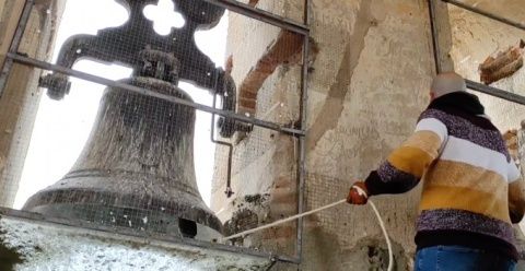Las campanas de la iglesia de San Pedro, en Montijo, volvieron a sonar de forma manual