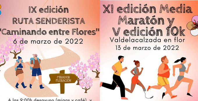 Continuarán las actividades el domingo 13 de marzo, con la Media Maratón, prueba que cumple su undécima edición. La prueba tendrá un recorrido de 21,097 kilómetros que aunará un pequeño tramo urbano, recorriendo las calles del municipio engalanadas para la celebración de Valdelacalzada en flor, con otro más extenso que discurrirá entre parcelas repletas de árboles florecidos.