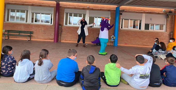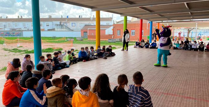 AOEX presentó a Vonco, su mascota, en el CEIP Príncipe de Asturias