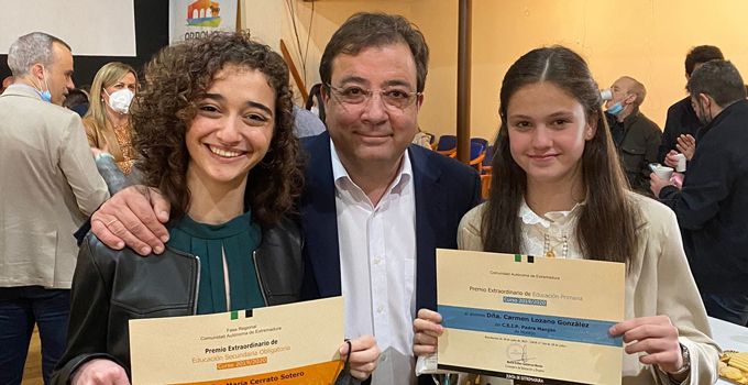 En este acto han sido galardonadas las montijanas Carmen lozano González, alumna del CEIP Padre Manjón, Premio Extraordinario de Educación Primaria; y María Cerrato Soltero, del IES Extremadura, Premio Extraordinario de Educación Secundaria Obligatoria.