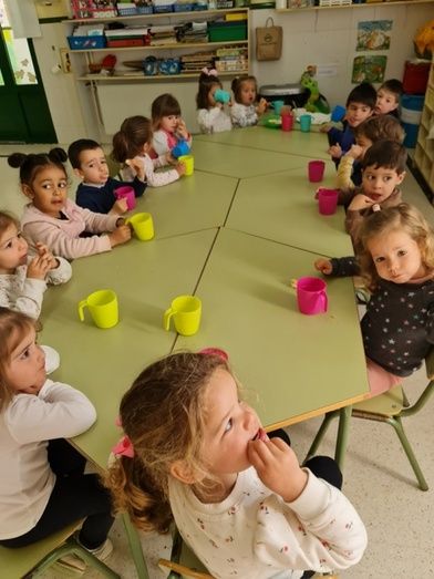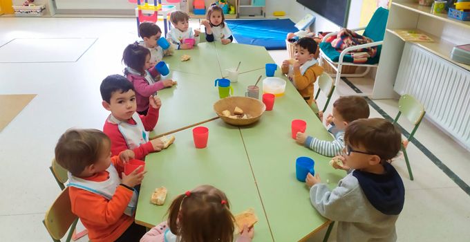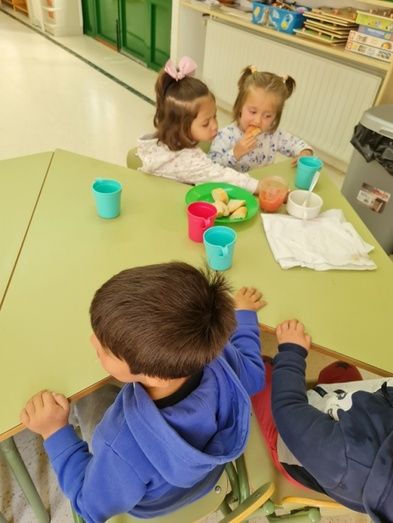 Desde el aula de bebés se ha trabajado el juego y las actividades al aire libre para promover su importancia frente al uso de las pantallas digitales. En el aula de 1-2 años han preparado ellos mismos su propio desayuno saludable a base de frutas. También han realizado circuitos para correr, saltar, trepar... Y se han convertido en médicos y enfermeros. Y en las clases de mayores se han realizado un desayuno saludable, elaborado por nosotros mismos, con zumo de naranja y pan con aceite y tomate que luego degustaron encantados deseando repetir otro día.