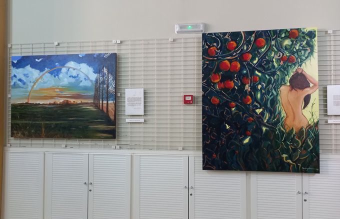 Domingo y José, en la amistad del arte fraguado desde hace años, coinciden en esta muestra donde se recrea la gubia del verso y la luz por el colorido que produce el deslizar del pincel por el lienzo plasmando los sentimientos que el artista percibe. “Acidez de la fruta recién cogida/del árbol elevado del edén./Muerde cuando es mordida con ahínco/y duele su venganza en las encías/porque cobra el osar arrebatarle/el germen del nuevo árbol no nacido,/prototipo unitario del boscaje/que enmarañe una selva prominente”. Y allí, una mujer desnuda, de espaldas, lamenta el mal cometido.
