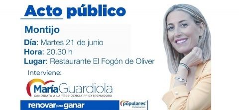 El Partido Popular realiza un acto público de carácter regional el martes 21 de junio a las 20:30 horas en el que será presentada la candidata a la presidencia del partido, María Guardiola Martín.