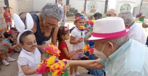 Hubo reparto e intercambio de regalos entre ambos grupos, relacionados con la primavera y la naturaleza, de flores de papel y paipáis, fabricado con mucho cariño y entusiasmo de manera manual por los participantes, pasando una vez más un rato inolvidable.