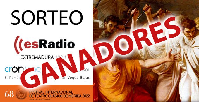 Los ganadores del sorteo de dos entradas dobles realizado por esRadio Extremadura y Crónicas de un Pueblo para ver "Julio César" el domingo 3 de julio en el Teatro Romano de Mérida han sido: