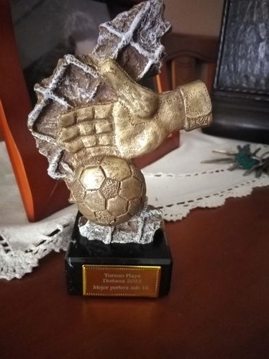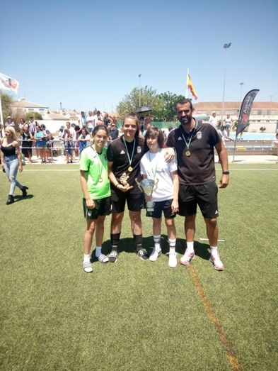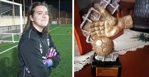 La montijana Lucía Gutiérrez recibe el trofeo a la mejor portera sub16 en el Torneo Playa de Doñana