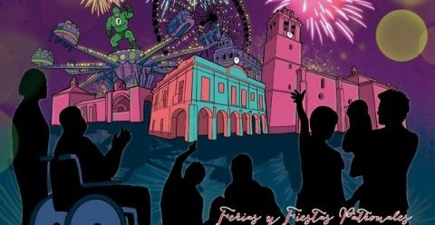 Este cartel es obra de Álex de la Fuente y Pedro Juan Pinilla, del equipo de Plena Inclusión que lleva el proyecto de Inclusion Man. Precisamente el equipo al completo serán los encargados este año de dar el pregón de la Feria.
