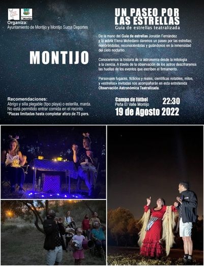 La Concejalía de Deportes del Ayuntamiento de Montijo ha organizado la actividad al aire libre “Un paseo por las estrellas” el viernes 19 de agosto, a partir de las 22.30 horas en el Campo de Fútbol Peña el Valle de Montijo.