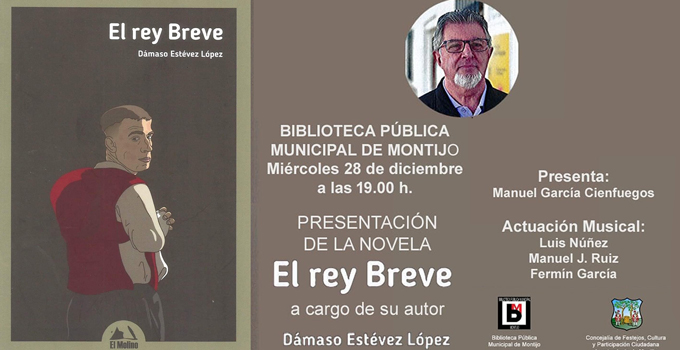 ![[Img #94704]](https://cronicasdeunpueblo.es/upload/images/12_2022/9649_320803759_906275657398062_2362148435345128446_n.jpg) Dámaso Estevez López preenta su primera novela, “El rey Breve”, el miércoles 28 de diciembre en la Biblioteca Municipal de Montijo.
