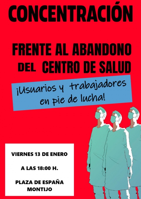 El viernes 13 de noviembre, estarán desde las 18:30 horas en la Plaza de España con el Movimiento en Defensa de la Sanidad y los Servicios Públicos, que reanuda las concentraciones quincenales “frente al abandono del Centro de Salud”.