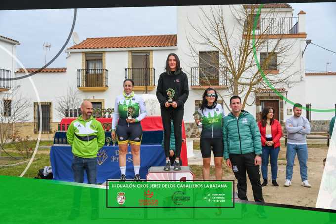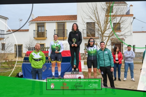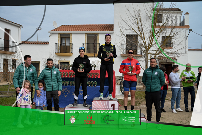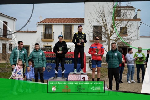 Finalmente Cristina Durán Calleja conseguiría la victoria en esta tercera edición del Duatlón Cros Jerez de los Caballeros La Bazana con un registro de una hora, 15 minutos y 30 segundos.