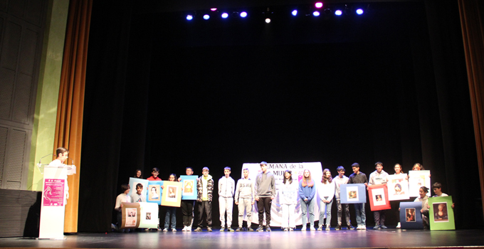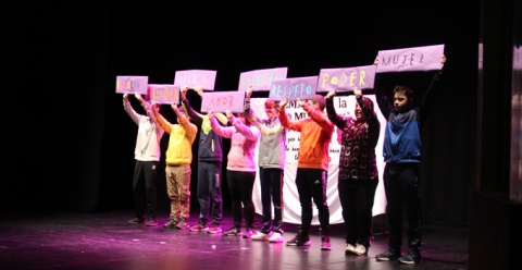 El acto, que se celebró en el Teatro Nuevo Calderón debido a la previsión de lluvia, contó con la presencia de distintas autoridades de los pueblos de la comarca, asociaciones y centros educativos, que se quisieron sumar con distintas lecturas y representaciones a la celebración del 8 de marzo.